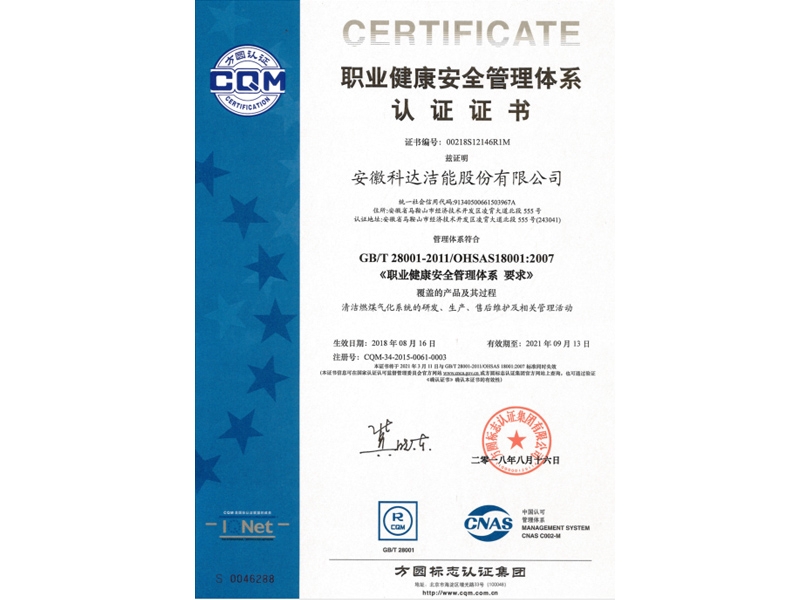 職業健康安全管理體系證書