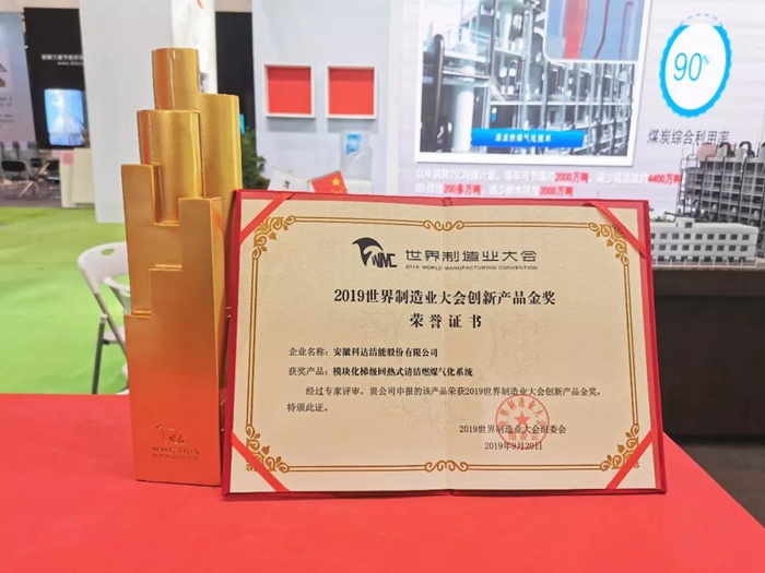 安徽科達(dá)潔能榮獲2019年世界制造業(yè)大會(huì)創(chuàng)新產(chǎn)品金獎(jiǎng)