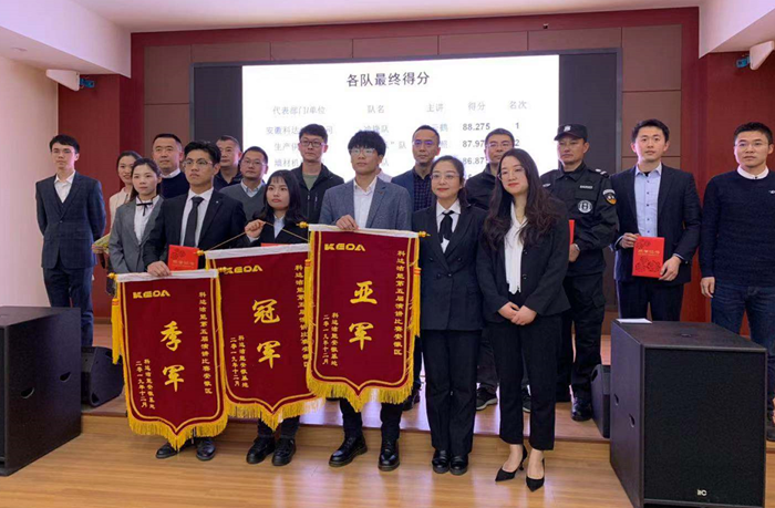 安徽賽區共有安徽科達潔能、墻材機械公司、虎渡科達公司、江蘇科行環保、車電聯隊等10支隊伍參與競爭角逐。最終潔能公司“沖鋒隊”一舉奪冠,獲得本次演講比賽團隊第一名,技術研發部張云鶴作為本次比賽的主講,憑著出色的表現,更是摘得“最受觀眾歡迎演說家”桂冠!作為新入職員工,她初生牛犢不怕虎、勇往直前向前沖,在比賽中盡顯自信與實力,她的表現也正是對本次演講主題——“大企工匠?自信前行”的完美詮釋。
