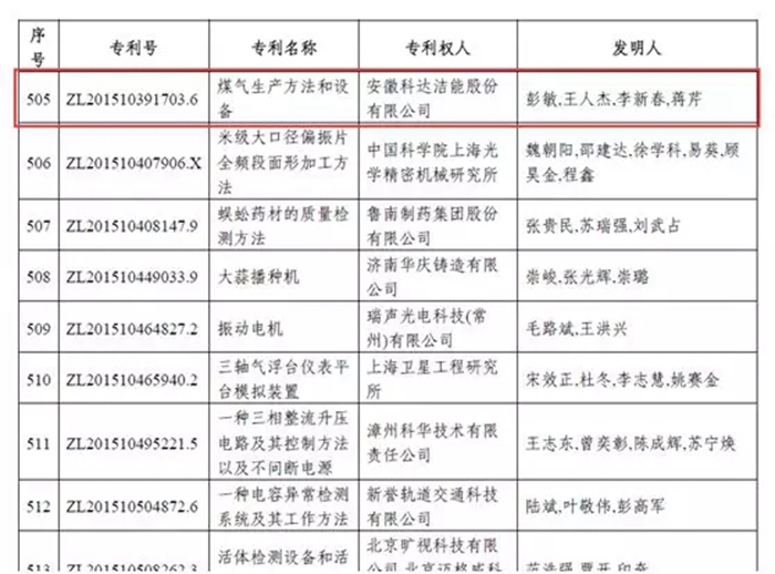 安徽科達(dá)潔能發(fā)明專利成果《煤氣生產(chǎn)方法和設(shè)備》獲中國(guó)專利獎(jiǎng)優(yōu)秀獎(jiǎng)