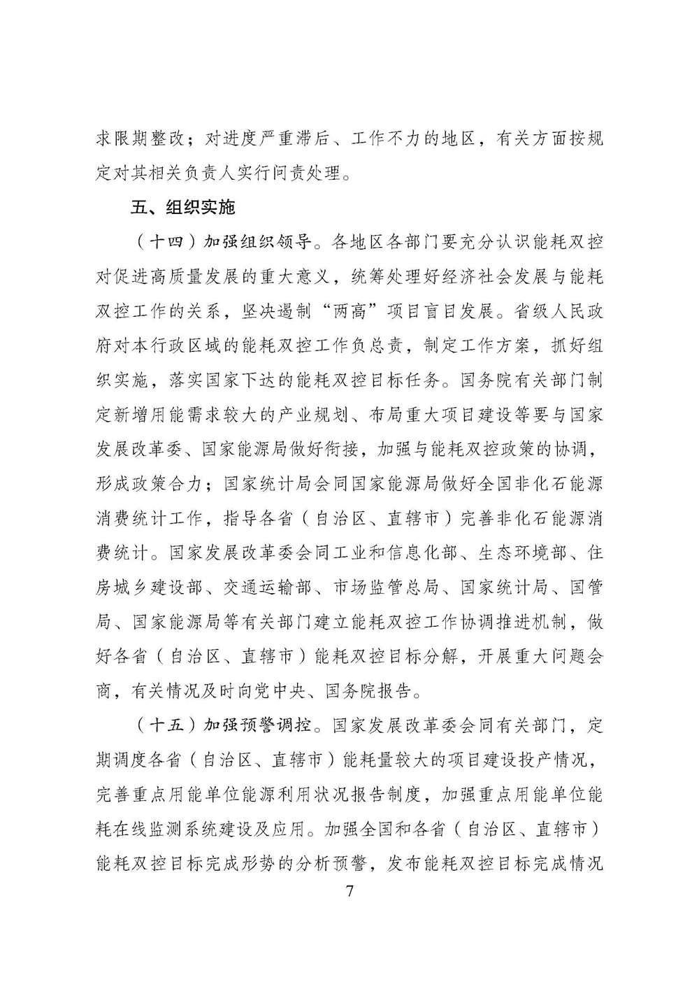 國(guó)家發(fā)展改革委關(guān)于印發(fā)《完善能源消費(fèi)強(qiáng)度和總量雙控制度方案》的通知